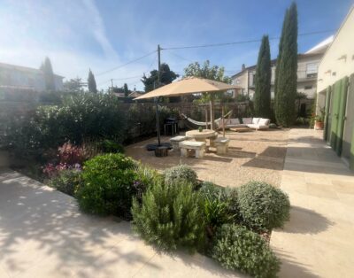 Située à 10 minutes à pied du centre-ville, ce charmant mazet de campagne offre un cadre idyllique pour une vie paisible. Dotée d’une chambre spacieuse, de deux salons accueillants et d’une cuisine entièrement équipée, elle associe le bien-être actuel au charme de la campagne.