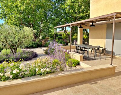 Située à quelques pas du centre du Paradou, la villa s’ouvre généreusement sur une terrasse couverte et ombragée, offrant un cadre idyllique pour des moments de détente inoubliables.
